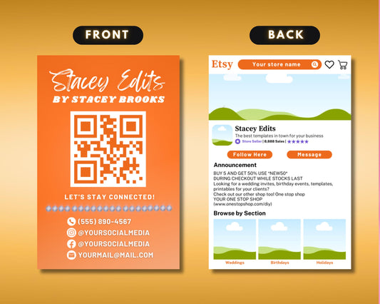 QR Code Business Cards, DIY Canva Business Card Template Design, Etsy Shop Call Cards, Small Business Cards, Premade Etsy Store Calling Card