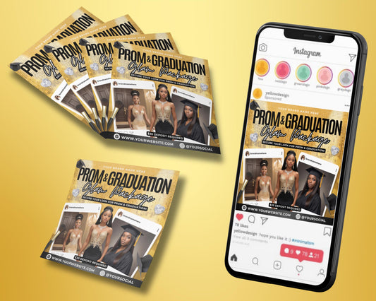 Prom and Graduation Flyer, DIY Flyer Template Designs, Beauty Service Package Flyer, Prom Deals Booking, Graduation Specials, Premade Flyers