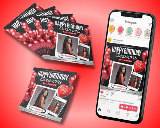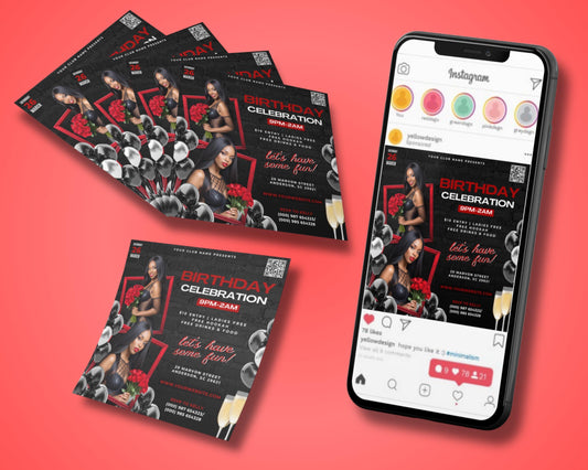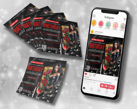 Red Black Birthday Flyer, DIY Flyer Template Design, Birthday Girl Party Invite Flyer, Birthday Event Flyer, Premade Celebration Bday Flyer