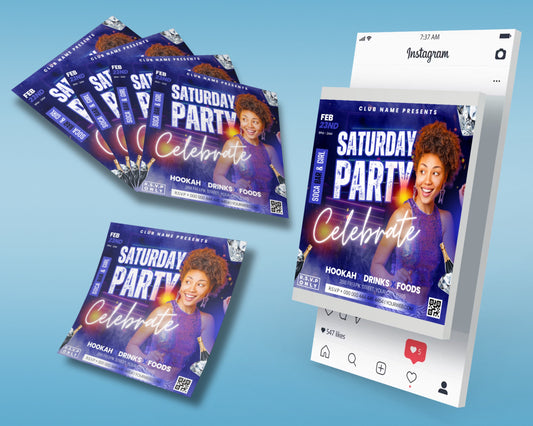 Saturday Party Flyer, DIY Flyer Template Design, Dance Party Night Flyer, February DJ Event Flyer, Premade Celebration Club Invite Flyer