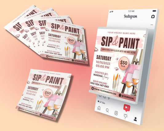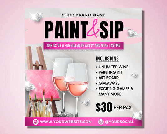 Regular price $2.99Regular priceUnit price / per$5.00Sale price $2.99Save MONEY💸, TIME⌛ and EFFORT💪 with our Sip & Paint Party Flyer Template! Perfect for artists, event planners, and businesses looking to promote a fun and vibrant night of painting, wine, and music. Featuring bold colors, artistic elements, and modern typography, this flyer ensures your event stands out. Whether hosting a girls' night, date night, or community gathering, this professionally designed template will attract attendees and set the mood. Raise a glass, grab a brush, and let creativity flow!
