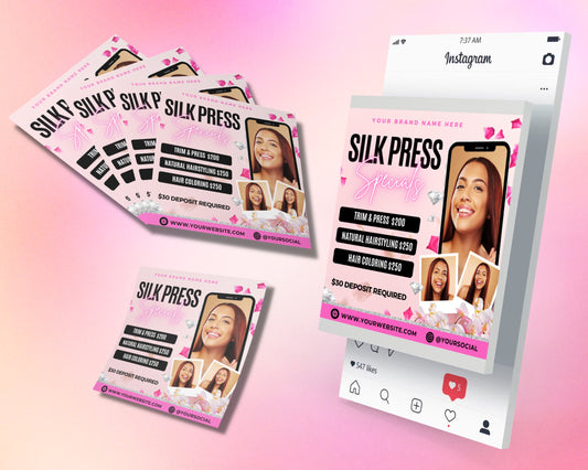 Silk Press Flyer, DIY Flyer Template Design, Hairstylist Flyer, Hair Straightening Flyer, Hair Treatment Flyer, Premade Hair Services Flyer