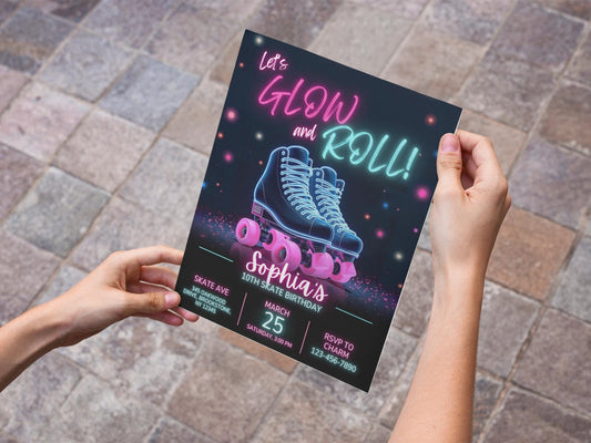 Skate Party Invitation Flyer, DIY Flyer Template Design, Neon Roller Skate Birthday Flyer, Bday Disco Flyer, Premade Roller Skating Event