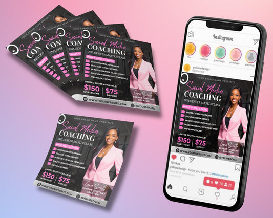 Regular price $2.99Regular priceUnit price / per$5.00Sale price $2.99Save MONEY💸, TIME⌛ and EFFORT💪with our Social Media Coaching Flyer Template, designed to help coaches, influencers, and content creators attract aspiring entrepreneurs ready to dominate the digital space.