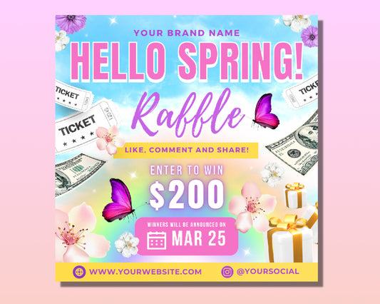 Spring Season Raffle Flyer, DIY Flyer Template Design, Spring Giveaway Flyer, March Raffle Prize Flyer, Premade Spring Hair Lash Promo FlyerSale -