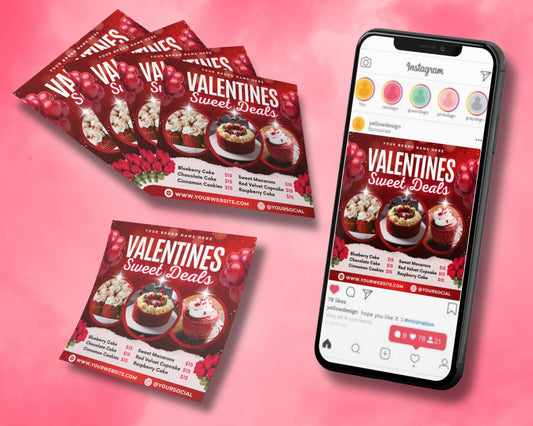 Regular price $2.99Regular priceUnit price / per$5.00Sale price $2.99Save MONEY💸, TIME⌛, and EFFORT💪 with our Valentine's Bakery Flyer Template! Perfect for showcasing your sweet deals, this vibrant and romantic design highlights your irresistible treats like cakes, cookies, and macarons. Ideal for bakers and pastry shops, this professionally crafted template will help attract dessert lovers and boost sales for Valentine's Day. Customizable and eye-catching, it’s the perfect way to spread love and satisfy cravings! 🍰❤️✨