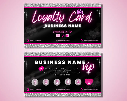 Regular price $0.99Regular priceUnit price / per$1.50Sale price $0.99Save MONEY 💸, TIME ⏳, and EFFORT 💪 with our eye-catching Pink Loyalty Business Card Template! This stunning design features vibrant pink tones, glittering accents, and stylish typography, making it the perfect tool to reward your customers and keep them coming back for more. Whether you're offering discounts, freebies, or exclusive perks, this loyalty card helps you build stronger connections with your clients while showcasing your brand's flair. Elevate your business with this chic and professional template that combines practicality with style! ✨