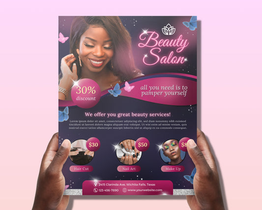 Regular price $2.99Regular priceUnit price / per$5.00Sale price $2.99Save, MONEY💸, TIME⌛, and EFFORT💪 with this Beauty Salon Flyer Flyer template! EDIT YOUR FLYER on CANVA on your PC or mobile device. Canva is a FREE web-based design platform that is super simple, easy to use, and FUN!