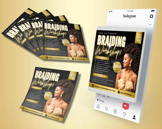 Regular price $2.99Regular priceUnit price / per$5.00Sale price $2.99Save, MONEY💸, TIME⌛ and EFFORT💪 with this premium template! Hair Braiding Masterclass Flyer! EDIT YOUR FLYERS on CANVA on your PC or mobile device. Canva is a FREE web-based design platform that is super simple, easy to use, and FUN!