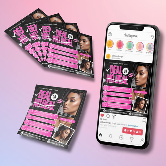 Regular price $2.99Regular priceUnit price / per$5.98Sale price $2.99Deal or No Deal Flyer Template – editable in Canva, perfect for hairstylists, braiders, wig specialists, and beauty professionals running interactive salon promotions. This unique flyer design allows you to market a fun “name your price” game with clients while promoting your services in a stylish way. Customize easily with your brand name, pricing rules, social media, and contact info. Great for salon specials, beauty discounts, and client engagement campaigns.