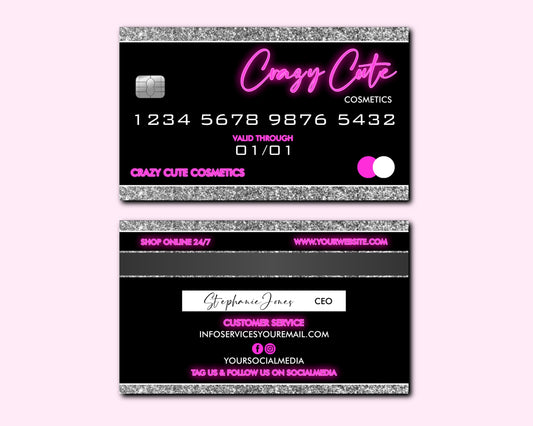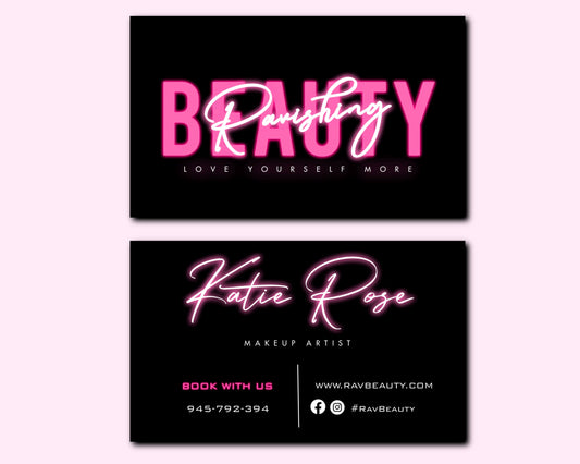 DIY Credit Card Business Cards, Business Card Design, Neon Beauty Brand Cards, Card Design, Premade Template Design