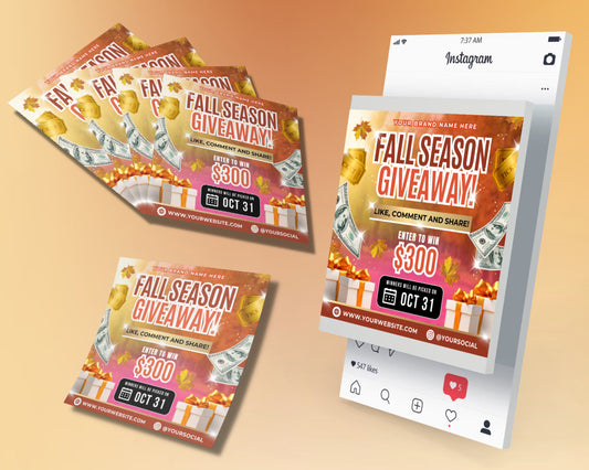 Fall Season Giveaway Flyer, DIY Flyer Template Design, Fall Contest Flyer, September Raffle Flyer, Premade Autumn Promotional Beauty FlyerSale -