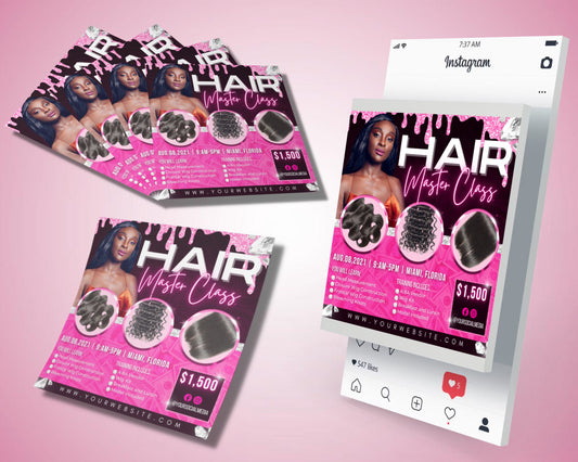 Hair Masterclass Flyer, DIY Flyer Template Design, Wig Training Course Flyer, Hair Business Class Flyer, Premade Instagram Hair Flyer Post