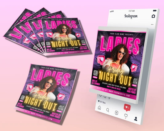 Ladies Night Flyer, DIY Flyer Template Design, Girls Night Out Invite Flyer, Happy Hour Night Club Event Flyer, Premade Instagram Post