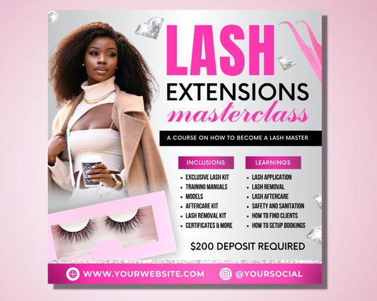 Regular price $2.99Regular priceUnit price / per$5.00Sale price $2.99Save, MONEY💸, TIME⌛ and EFFORT💪 with this premium template! Lash Extensions Masterclass Flyer! EDIT YOUR FLYERS on CANVA on your PC or mobile device. Canva is a FREE web-based design platform that is super simple, easy to use, and FUN!