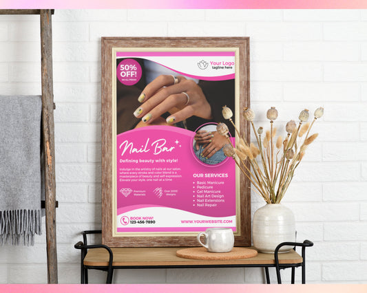 Nail Art Salon Flyer, DIY Flyer Template Design, Gel Acrylic Press On Nails Flyer, Nail Artist Flyer, Premade Nail Services Manicure Flyer