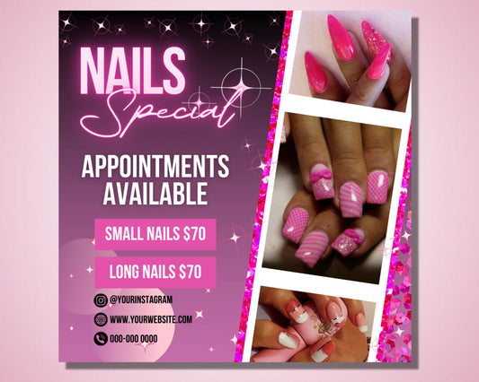 Nails Special Flyer, DIY Flyer Template Design, Booking Flyer, Appointment Flyer, Nail Tech Flyer, Stylist Flyer, Premade Business Flyer