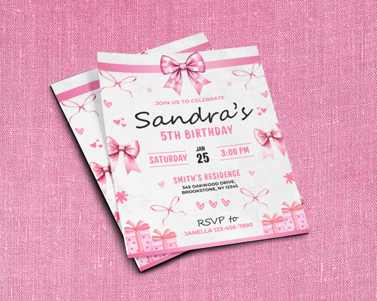Pink Bow Party Invite Flyer, DIY Flyer Template Design, Coquette Party Flyer, Feminine Event Flyer, Premade Pink Ribbon Elegant InvitationSale -