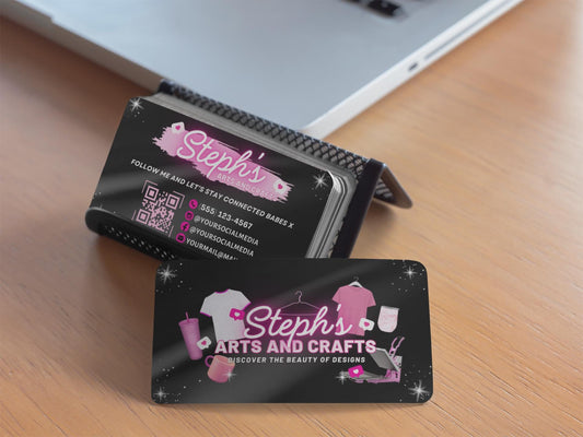 Regular price $0.99Regular priceUnit price / per$1.50Sale price $0.99Save, MONEY💸, TIME⌛ and EFFORT💪 Stand Out with Our Pink Craft Business Card Template! 🎀✨ Perfect for crafters, artists, and handmade business owners, this bold and stylish design highlights your brand with a sleek black and pink aesthetic, sparkling accents, and creative elements. Featuring customizable contact details, social media handles, and a QR code for easy access, this template ensures your business stays memorable and professional. Whether you're selling custom apparel, accessories, or handmade crafts, this eye-catching business card will help you connect with clients and grow your brand effortlessly!