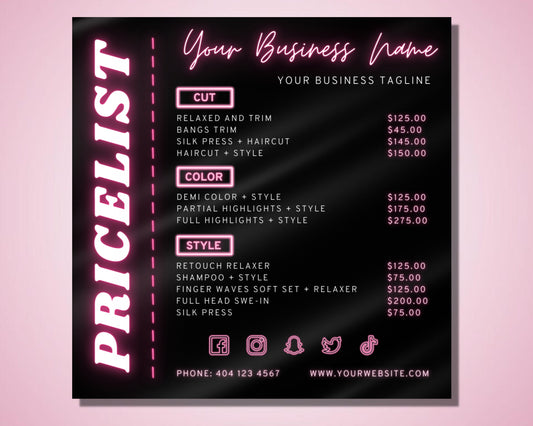 Price List, DIY Flyer Template Design, Hair Pricing Flyer, Pricelist Flyer, Pricing Guide Sheet, Nails Flyer, Premade Salon Business FlyerSale -