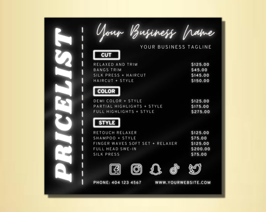 Price List, DIY Flyer Template Design, Price Sheet, Hair Pricing Flyer, Pricelist Flyer, Pricing Guide Sheet, Premade Salon Business FlyerSale -