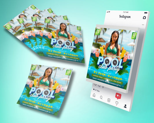 Pool Party Club Flyer, DIY Flyer Template Design, Summer Celebration Flyer, Dance Beach Party Invite Flyer, Premade Club Live DJ Event Flyer