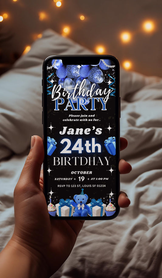 Animated Birthday Party Invitation, DIY Template Design, Blue and Silver Story Invite, Weekend Bday Party Evite, Premade Dinner CelebrationSale -