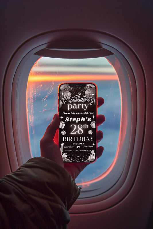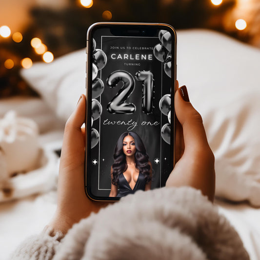 Regular price $3.99Regular priceUnit price / per$7.98Sale price $3.99Save MONEY💸, TIME⌛, and EFFORT💪 with our sophisticated "Black & Silver" Animated Birthday Invite Template. Perfect for celebrating a milestone 21st birthday or any chic event, this glamorous digital invitation features a stunning individual in black, elegant black balloons, and silver accents, setting an exclusive and stylish tone across three digital screens. Ideal for anyone planning a modern and elegant black-themed party, this video invite is designed to impress guests, share all the event details, and even include a heartfelt thank you note. Whether you're sending it via text, email, or social media, this professionally crafted template will make your celebration shine.