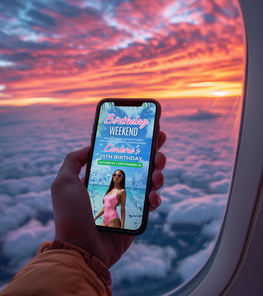 Regular price $2.99Regular priceUnit price / per$6.95Sale price $2.99Save MONEY💸, TIME⌛, and EFFORT💪 Celebrate in paradise with our Animated Birthday Weekend Getaway Party Template! 🌴☀️ Perfect for hosting an unforgettable beach escape, this customizable video invitation showcases stunning tropical vibes. It includes all the essentials: the main invite, event details, and a personalized thank-you note. Easily upload your favorite song, edit text, and share across all platforms. Ideal for anyone planning a luxurious birthday weekend filled with sun, fun, and relaxation. Make your getaway extra special with this vibrant, animated template!