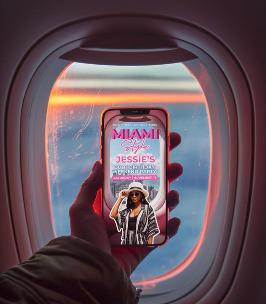 Animated Birthday Trip Invitation, DIY Template Design, Vacation Schedule Invite, Miami Weekend Evite, Premade Travel Party CelebrationSale -
