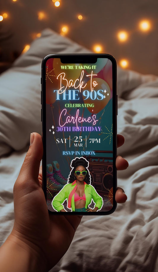 Animated Birthday Party Video Invitation, DIY Template Design, 90s Party Invite, Premade Nineties Vintage Party Celebration Digital InviteSale -