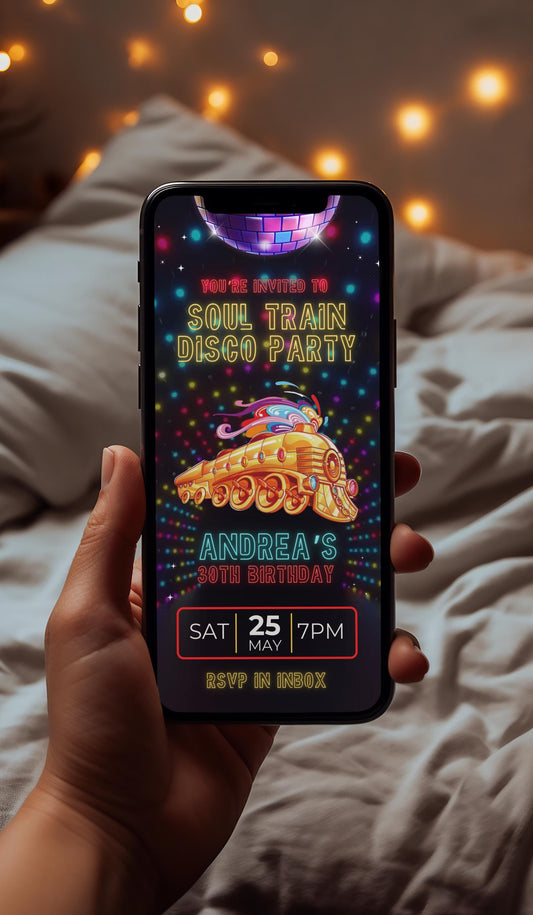 Save TIME, MONEY, and EFFORT with this electrifying Soul Train Party Animated Invite Template! Perfect for birthday bashes, retro disco nights, and 70s-themed celebrations, this vibrant design brings the funk, lights, and soul straight to your guests.