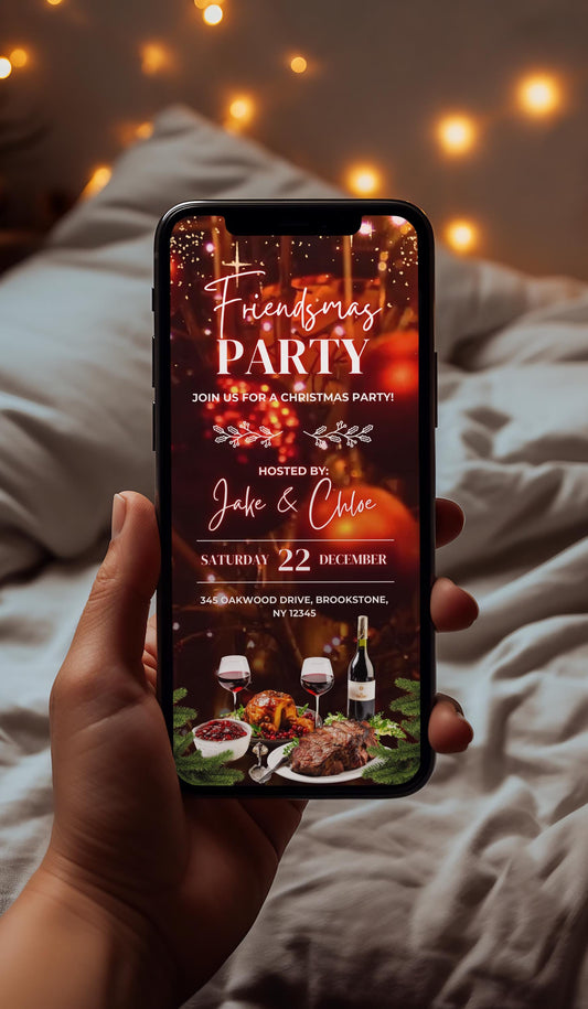 Animated Christmas Dinner Invitation, DIY Template Design, Friendsmas Party Video Invite, Premade Holiday Festive Celebration Digital InviteSale -