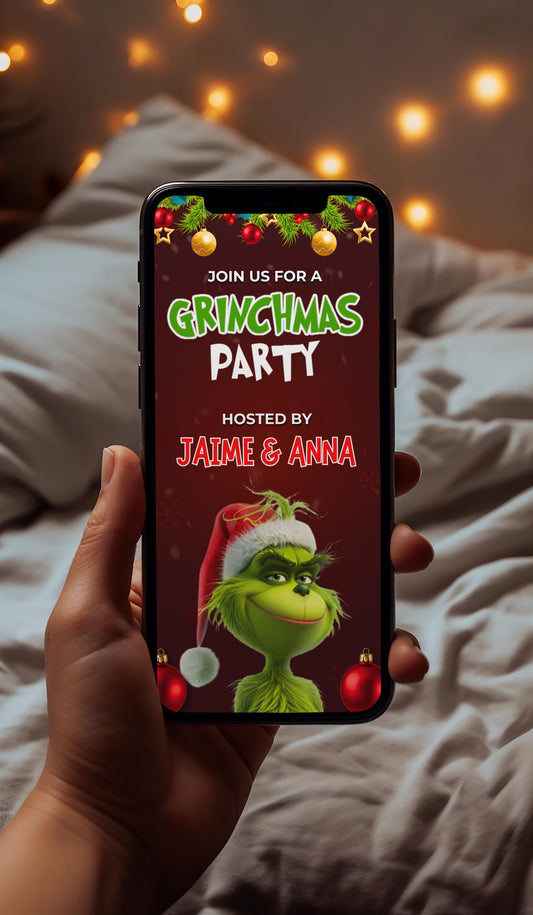 Animated Christmas Dinner Invitation, DIY Template Design, Friendsmas Party Video Invite, Premade Grinch Holiday Festive Celebration InviteSale -
