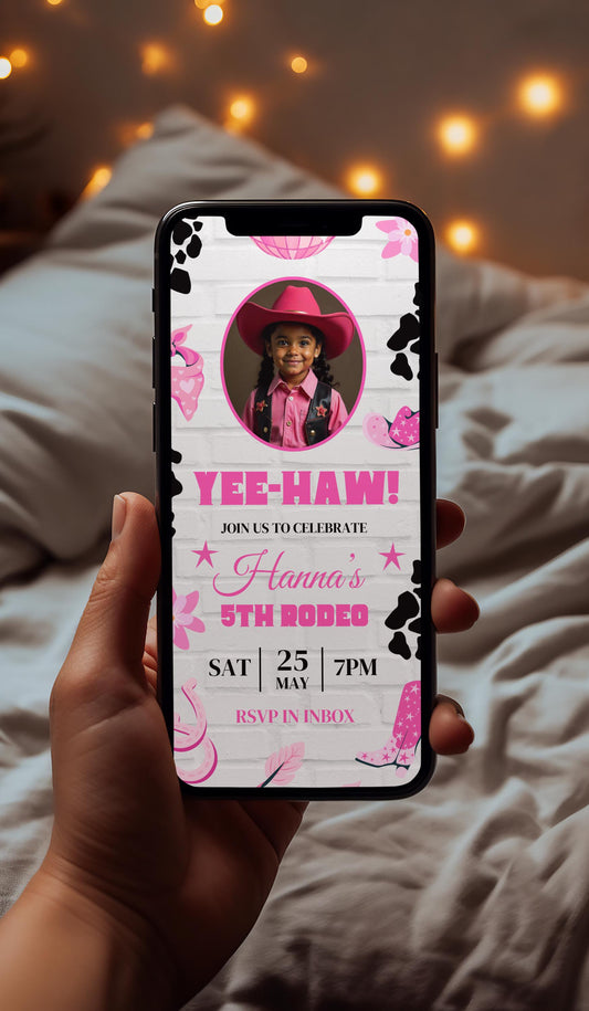 Regular price $2.99Regular priceUnit price / per$6.95Sale price $2.99Save MONEY💸, TIME⌛, and EFFORT💪 with this adorable Kids' Pink Cowgirl Invite Template! Featuring a 100% animated design, customizable text, and the ability to upload your favorite song, this template makes party planning a breeze.