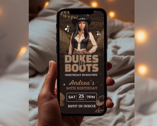 Animated Dukes and Boots Bday Invite, DIY Template Design, Wild West Video Invite, Cowboy Themed Evite, Premade Country Western CelebrationSale -
