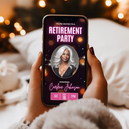 Regular price $3.99Regular priceUnit price / per$7.98Sale price $3.99Retirement Party Video Invite for the modern celebration! 🎉 This animated Canva template features three editable digital pages — a main event cover, detailed info section, and a bonus QR code gift page — making it perfect for honoring your retiree in style. Whether you're planning a surprise farewell party, a classy black and gold celebration, or simply want to send a phone-based invitation, this editable video template is ideal. Designed for ease in Canva, it’s perfect for last-minute event hosts, families, or coworkers planning a beautiful send-off!