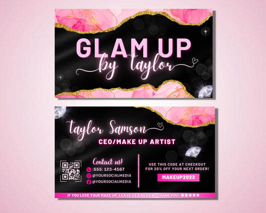 Glam Business Cards, DIY Business Card Template Design, Beauty Boutique Business Cards, Marble Pink Business Card, Premade Business Cards