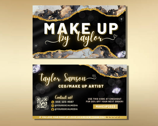 Business Cards, DIY Business Card Template Design, Beauty Boutique Business Cards, Gold Makeup Artist Business Card, Premade Business Cards