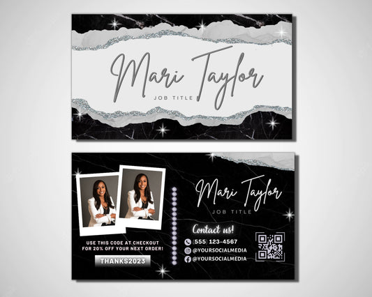 Thank You Business Cards, DIY Business Cards Design Template, Thank You For Your Order Cards, Hair Business Card, Premade Glitter Card