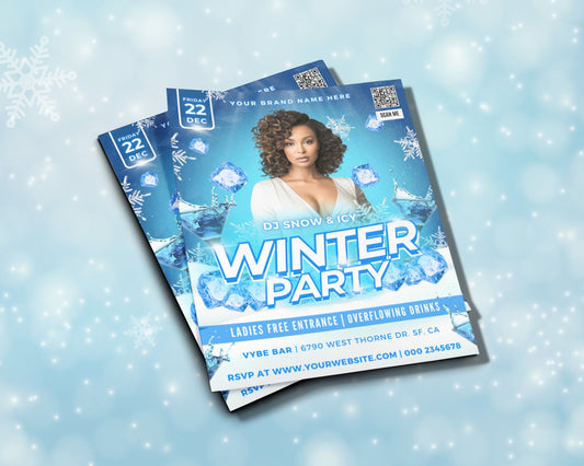 Winter Party Events Flyer, DIY Flyer Template Design, Holiday Celebration Flyer, Christmas Dance Party, Premade Winter Night Club DJ FlyerSale