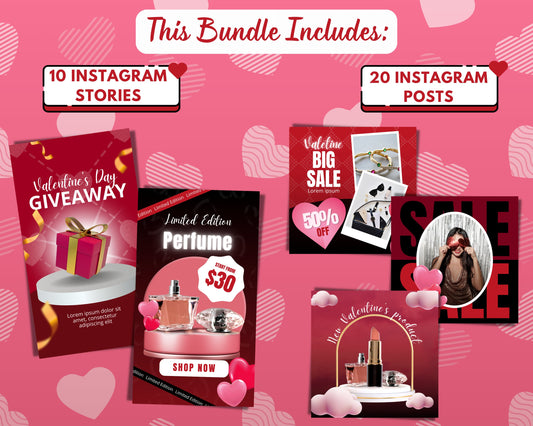 Valentine Social Media Post Bundle, DIY Template Design, Valentine's Day Instagram Stories, Social Media Manager, Premade Business IG PostsSale -