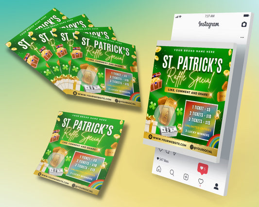 St. Patrick's Raffle Flyer, DIY Flyer Template Design, Raffle Ticket Flyer, Prize Draw Flyer, March Giveaway Flyer, Premade Editable FlyerSale