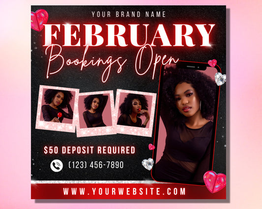 February Booking Flyer, DIY Flyer Template Design, Valentines Flyer, Hair Flyer, Booking Flyer, Appointment Flyer, Premade Editable FlyerSale -