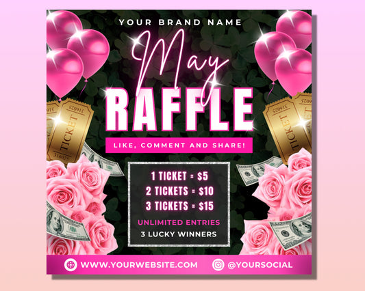 May Raffle Flyer, DIY Flyer Template Design, Giveaway Flyer, Raffle Ticket Flyer, Prize Raffle Flyer, Premade Business Flyer, Contest FlyerSale