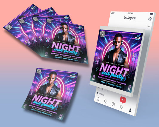Night Out Party Flyer, DIY Flyer Template Design, Male Party Flyer, DJ Invite Flyer, Club Event Flyer, Premade Celebration Business Flyer