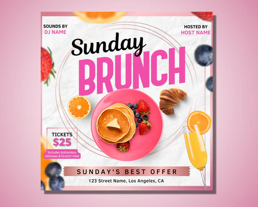 Brunch Flyer, DIY Flyer Template Design, Brunch Invitation Flyer, Sunday Brunch Flyer, Event Flyer, Social Media Premade Editable FlyerSale -