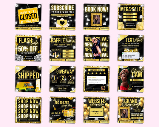 Flyer Bundle, DIY Gold Flyer Template Design, Social Media Instagram Flyers, Hair Bundle Beauty Sale Flyers, Premade Business Flyer SetSale -