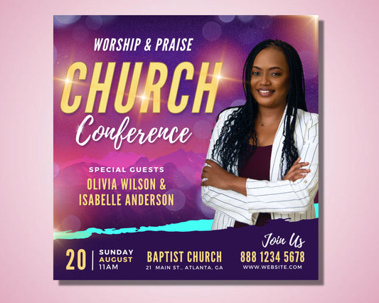 Church Flyer, DIY Flyer Template Design, Church Conference Flyer, Church Service Flyer, Prayer Flyer, Worship Flyer, Premade Editable Flyer