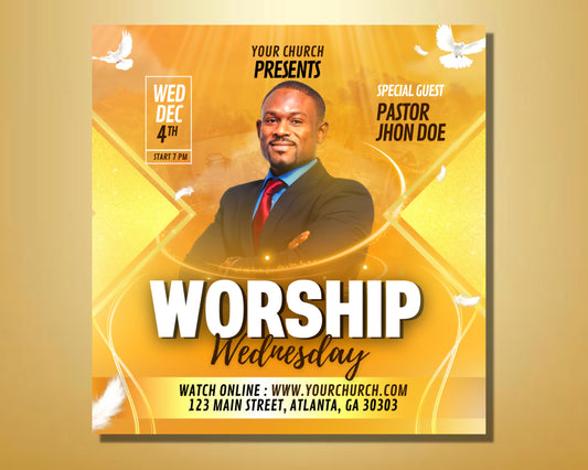 Church Flyer, DIY Flyer Template Design, Worship Wednesday Church Flyer, Prayer Flyer, Church Service Flyer, Sunday Service Invitation FlyerSale -